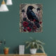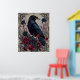 Set the tone for a moody mystical vibe in a gothic teen room with this striking poster. This design features a detailed black raven subject paired with a vintage floral pattern rendered in a deep crimson and charcoal palette. It is the perfect way to celebrate a bedroom makeover or a unique gift for an edgy alt teen.
