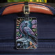 Secure your belongings with a touch of mystery using this dark academia travel identifier. The design features a stunning iridescent crow perched amidst ornate purple florals and gothic gargoyle statuary rendered in a deep purple and teal palette. It is the perfect way to personalize your suitcase for your next adventure or a thoughtful gift for a frequent flyer.