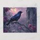 This striking digital artwork features a gothic raven perched among deep purple roses, set against a dark, moody backdrop. The combination of the mysterious bird and rich floral elements creates an enchanting, gothic-inspired aesthetic perfect for dark art lovers.