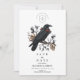 A darkly elegant design featuring a black raven on snow-covered branches, accented with red holly and vintage skulls. Perfect for gothic winter weddings, this moody layout balances macabre details with refined minimalism.