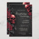 Gothic Red & Black Skull & Rose Damask Handfasting Invitation