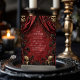Step into a night of dark elegance with this gothic red curtain Halloween soirée design. Featuring dramatic velvet drapes, black roses, and gold-adorned skulls, it sets the perfect tone for a hauntingly glamorous celebration. Personalize with your details and host an unforgettable evening of mystery and macabre.