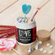 Celebrate your Gothic-themed special day with this striking candy jar, which features the sappy, pun-filled sentiment, "Love at First Bite" in Goth-inspired lettering (and the outline of a rose, standing in for the letter 'O') and the newlyweds' names and wedding date set on romantic red rose backgrounds.