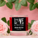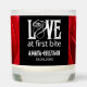 Celebrate your Gothic-themed special day with this striking scented candle, which features the sappy, pun-filled sentiment, "Love at First Bite" in Goth-inspired lettering (and the outline of a rose, standing in for the letter 'O'). Customize with newlyweds' names, wedding date, and vows.