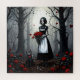 +AI ART+ Gothic robot girl with red flowers and her glitched kitty standing in a forest. Are you her true love? She's waiting for you.
