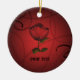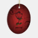 A beautiful red rose on a dark red background on this ornament to personalize.