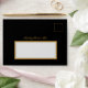 Elevate your wedding stationery with our stunning Black and Gold Gothic Romance Invitation Envelope, part of The Magical Moment's exclusive Gothic Romance wedding suite. This exquisite design boasts a striking black background adorned with an intricately crafted golden filigree circle, accompanied by elegant roses and a delicate butterfly. At the center, a beautifully detailed black four-tier wedding cake, embellished with vibrant red roses, commands attention, adding a touch of gothic elegance and romantic charm to your special occasion. Perfect for setting the tone of your unique and enchanting wedding celebration.