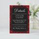 A details card is the perfect finishing touch to your gothic or rose-themed wedding invitations to set the tone for an elegant wedding. This enclosure card features crimson red roses against a stark black background. This details card lets your guests know where everything will take place and how to book reservations. So send out Gothic Rose Detail Cards along with your invitation and get ready for an unforgettable wedding! Also available in a horizontal style in my store.