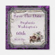 Elegant personalized / personalised custom Gothic style 60th birthday party celebration Save The Date magnets for women and girls. On the front of these glamorous birthday party save the date magnets is a beautiful scrapbook image of metallic silver paper, a pink and white rose in the bottom right corner, and surrounding this is a metal effect silver frame. All printed on a beautiful grunge effect purple background with a floral black damask pattern. These original, unique, pretty Gothic magnets for women and girl's are printed/decorated on the front side only. If you need any assistance in customizing your product please contact me through my store and i will be happy to help you. SARAH_DESIGNS MOST POPULAR PRODUCTS FLASH PANEL