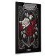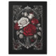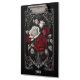 Red and white-gray roses in a vase, held in a gray, wrought-iron frame on a black background creates a lovely goth clipboard.