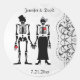 Gothic Skeleton Bride & Groom Couple Save the Date Label Stickers. Really cute skeletons featuring a groom and a bride, save the date text, and bride & grooms name & wedding date postcards. Complete with tophat bowtie, veil and heart!Great and very unique dave the date postcards for your Halloween Wedding, Goth or Theme Wedding!