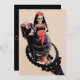 Save the date wedding invitation, featuring headless groom skeleton bride in black and red standing on a gothic mirror