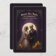 This romantic gothic wedding save the date announcement flat card features a skeleton couple dressed in wedding atire with candles and red roses atandiing in front of a full moon. . Images generated with AI.