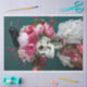 This decoupage tissue paper features a hauntingly beautiful skeleton crowned with lush pink blooms and a watchful raven, set against a deep teal backdrop. A spellbinding blend of macabre and elegance—ideal for gothic junk journals, Halloween furniture upcycles, dramatic wrapping, or romantic dark décor. Only from Hautegraphique—where florals meet the afterlife in full bloom.