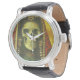 This watch is illustrated with decorative gothic skeleton witch. By surrealist artist Michael Thomas.