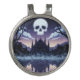 Keep your marker handy with this gothic skull ball marker clip. A glowing skull and castle reflection give it a haunting design.