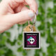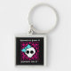 Super cute punk goth sweet 16 square premium key chain party favor with a black and fuchsia background and a skull with a blue bow on it. Add a name or other text to it.
