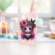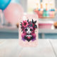 Sip in style with this striking can glass featuring a gothic skull character adorned with vibrant pink and purple hair, a floral crown, and a red heart motif. Inspired by Día de los Muertos and alternative fashion, this double-sided design blends dark whimsy with bold color—perfect for iced coffee lovers, collectors, and fans of expressive drinkware.