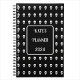 Pattern of white skulls on a black background. This planner will allow you to plan your tasks the way you like.Personalize by add your name, title and year.