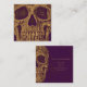 Skull head face close up creepy Gothic grunge gold purple creative texture design. Tattoo artist square professional business cards. Unique, cool, trendy, modern, scary vintage style. Image copyright Marg Seregelyi Photography.