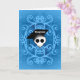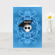 A cute greeting card with a goth skull and graduation cap on a pretty blue background on it.