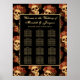 This gothic wedding seating chart poster welcomes your guests with a pattern of creepy skulls floating in a black abyss behind your monogram text. Each skull is adorned with red roses for your romantic occasion on Halloween. Their empty soulless eyes are contrasted sharply against the goth rose crown and bouquets of dead flowers. Add up to 12 tables of guests names to this print.