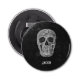 Gothic skull head grunge black and white creative texture design. Custom printed name round bottle opener. Unique, cool, trendy, modern, scary vintage style kitchen decor. Image copyright Marg Seregelyi Photography.