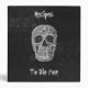 Black and white skull head Gothic grunge texture. Spooky Recipes To Die For kitchen cookbook. Cool, trendy, modern, scary vintage style Halloween design. Image copyright Marg Seregelyi Photography.