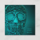 Skull head Gothic grunge teal green metallic creative texture design. Tattoo artist professional square business cards. Trendy, unique, cool, modern, scary vintage style. Image copyright Marg Seregelyi Photography.