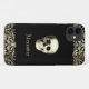 This stylish Personalized Phone case features a white Gothic Skull with golden ornaments on a black background. Vintage style fonts add authentic look to this Gothic Style design. Personalize with your name. The background color is customizable.