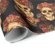 Gothic Skull Red Rose Black Halloween Pattern Wrapping Paper