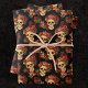 These Halloween party or gothic wedding wrapping paper sheets features a pattern of creepy skulls floating in a black abyss behind your monogram text. Each skull is adorned with red roses. Their empty soulless eyes are contrasted sharply against the goth rose crown and bouquets of dead flowers.
