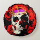 Gothic Skull Red Roses Round Pillow