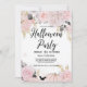 Invite friends to a mysterious Halloween night with this stylish design featuring roses, webs, and skulls.