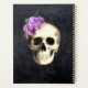 Stylish and Chic Gothic Floral Skull Personalized Planner. Design features a white skull accented with a beautiful purple roses on a black texture background. Personalize with your name and year