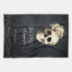 Decorate your kitchen this Halloween with our Gothic Glam Skull kitchen towel .Design features Gothic floral skull with faux gold confetti dots and "Bone Appetit" text on a black textured background. The skull is accented with a beautiful white roses. Personalize with your name.