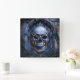 Gothic skull mural on a worn, crumbling stone wall, crafted with intricate etchings and subtle, eerie luminescence, evoking an air of mysterious foreboding, amidst a palette of deep, rich blues and purples, punctuated by flashes of golden ochre, with ornate details resembling delicate, Gothic architecture, swirling tendrils of ivy creeping around the edges, and subtle, fiery sparks scattered throughout, as if the skull itself was about to come alive, imbuing the scene with a haunting, cinematic quality.