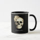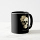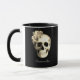Gothic Floral Skull personalized coffee mug. Design features skull accented with beautiful white roses on a black background for a gothic look that is both elegant and edgy. Personalize this mug with your name to make it truly one-of-a-kind. Perfect gift for those who love gothic style and dark elegance.