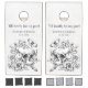 Gothic wedding cornhole prominently displayed "till death do us part". The design features two skulls with flowers. This cornhole set is a perfect addition to your goth wedding, that will make your wedding a fun one. It is also a beautiful keepsake for after the wedding.