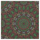 Green, red, yellow and white gothic stained glass leaves mandala pattern on a black background.