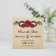 Darkly elegant Gothic Swirl Roses Save the Date Announcement featuring a swirl flourish and a trio of deep red roses on a faux textured paper background. This cool and unique save the date is perfect for the couple planning a non-traditional goth wedding. Easy to customize, simply add the details of your wedding in the fields provided. Click on the "Customize It" button to find additional personalization options.