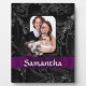 Easily personalize this alternative gothic tattoo style skull character and purple ribbon design by adding your own photo of your loved one and name or text to the templates to make a unique customized product. Visit the PHOTOGIFTZ STORE for matching products. The template photo image text and can easily be replaced with your own, Photographs of the same 4 x 3 dimension should replace the template image exactly. If your photo is of a different dimension you may have to use CUSTOMIZE to adjust the size, of the photo and text, by drag and drop.