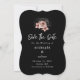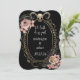 Save the date card with skull frame and florals. Includes the saying 'Til Death Do Us Part in a pretty distressed font. includes pink florals with thorns, feathers and a spider. A dark and moody yet beautiful design for your upcoming wedding. See coordinating items in our shop, Enchanted Finch.