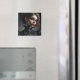 This magnet features a spooky but beautiful vampire woman with red eyes, blood-red lips, and sharp fang. She is dressed in black Victorian fashion, embodying the perfect mix of gothic romance, dark fantasy art, and haunting horror aesthetics.