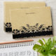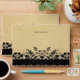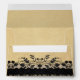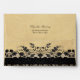 The design features slightly yellowed, aged paper and a black flower lace border around the envelope.