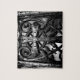 An old wrought iron cross in heart from a door on a crypt in black and white on a puzzle.