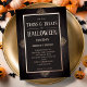 Customizable Halloween party invitation in a moody dark Victorian gothic theme, in black, dark grey and gold tones.