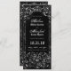 These skinny, gothic victorian black and white save the date wedding announcements are perfect for Halloween weddings, with an ornate, old-fashioned swirly frame, cracked with age, covered in spooky cobwebs, against a lightly textured, moody black background with crackling lightning. The text is a combination of grunge script, classic easy to read block lettering, and Old English, medieval style type. Customize the back with further info for your guests, or delete those fields to leave the back blank.