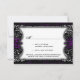 These gothic victorian wedding rsvps in ghoulish, glowing purple are perfect for Halloween weddings, with an ornate, old-fashioned swirly frame, cracked with age, covered in spooky cobwebs, against a lightly textured, moody background. The text is a combination of grunge script, classic easy to read block lettering, and Old English, medieval style type. Easily customize the back with your respond by date, and the front with your own wording.