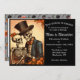 Add a touch of charming quirkiness to your goth Halloween wedding invitations with our vintage skeleton wedding couple budget friendly wedding invitation with QR code. Featuring a vintage skeleton bride and groom illustration that brings a playful twist to your special day. All the pertinent information is on the front while the reverse offers a template for your customized text and a QR for your wedding website. It's a tasteful blend of spooky and fun that's sure to intrigue your lucky guests.